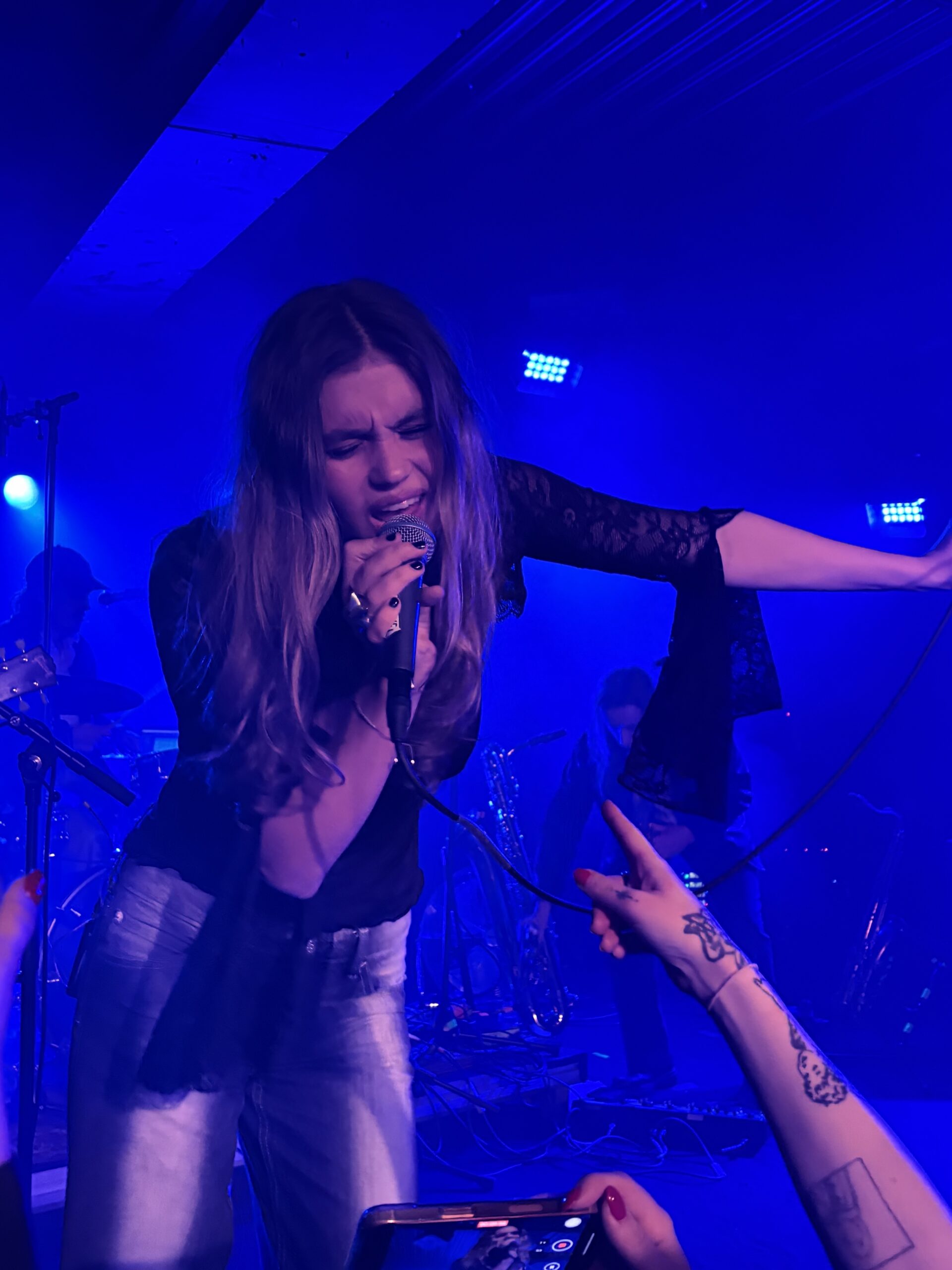 Och publiken svarar direkt. Längst fram står ett gäng kompisar som redan från första låten sjunger med i varje textrad, ibland lite för högt, men aldrig på ett sätt som stör – snarare förstärker de stämningen. Det är som att Ida-Lova får sin egen kör, spontant framvuxen ur rummet.